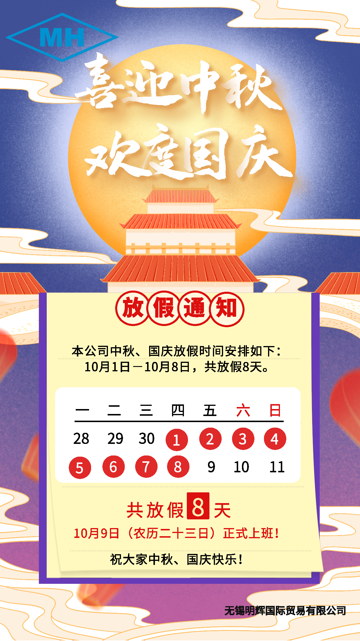 【無錫明輝】2020國慶中秋放假通知